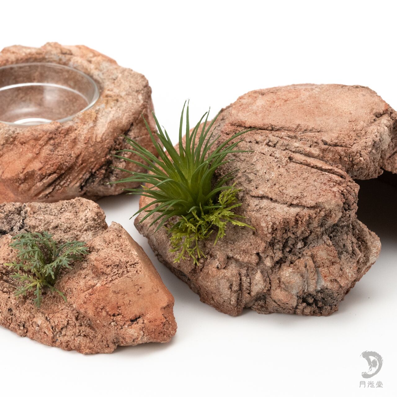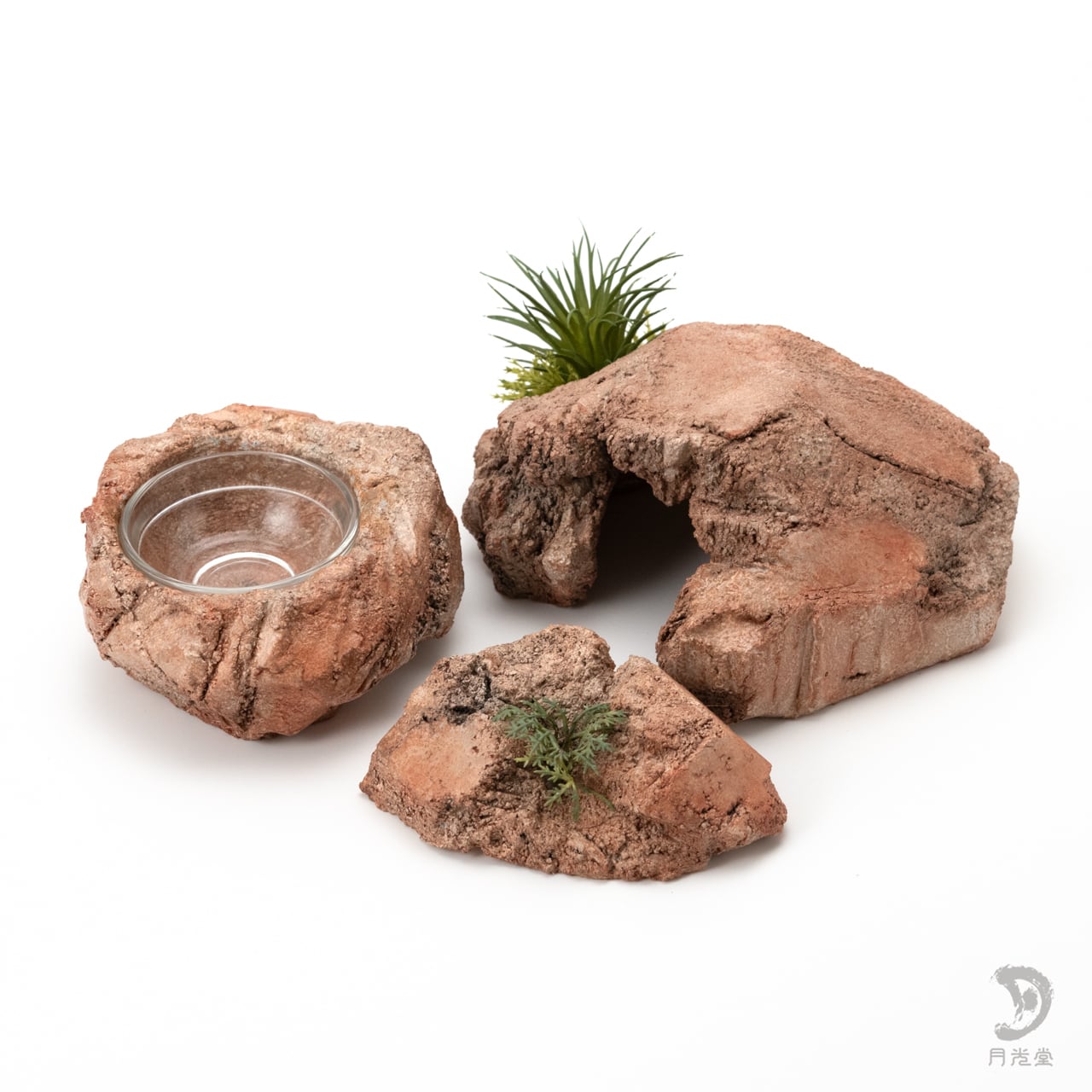 月光堂 「ドームシェルター + 水入れ + レイアウトロック セット 」|レプタイルボックスに収まるボリューム| 爬虫類 シェルター 259d2