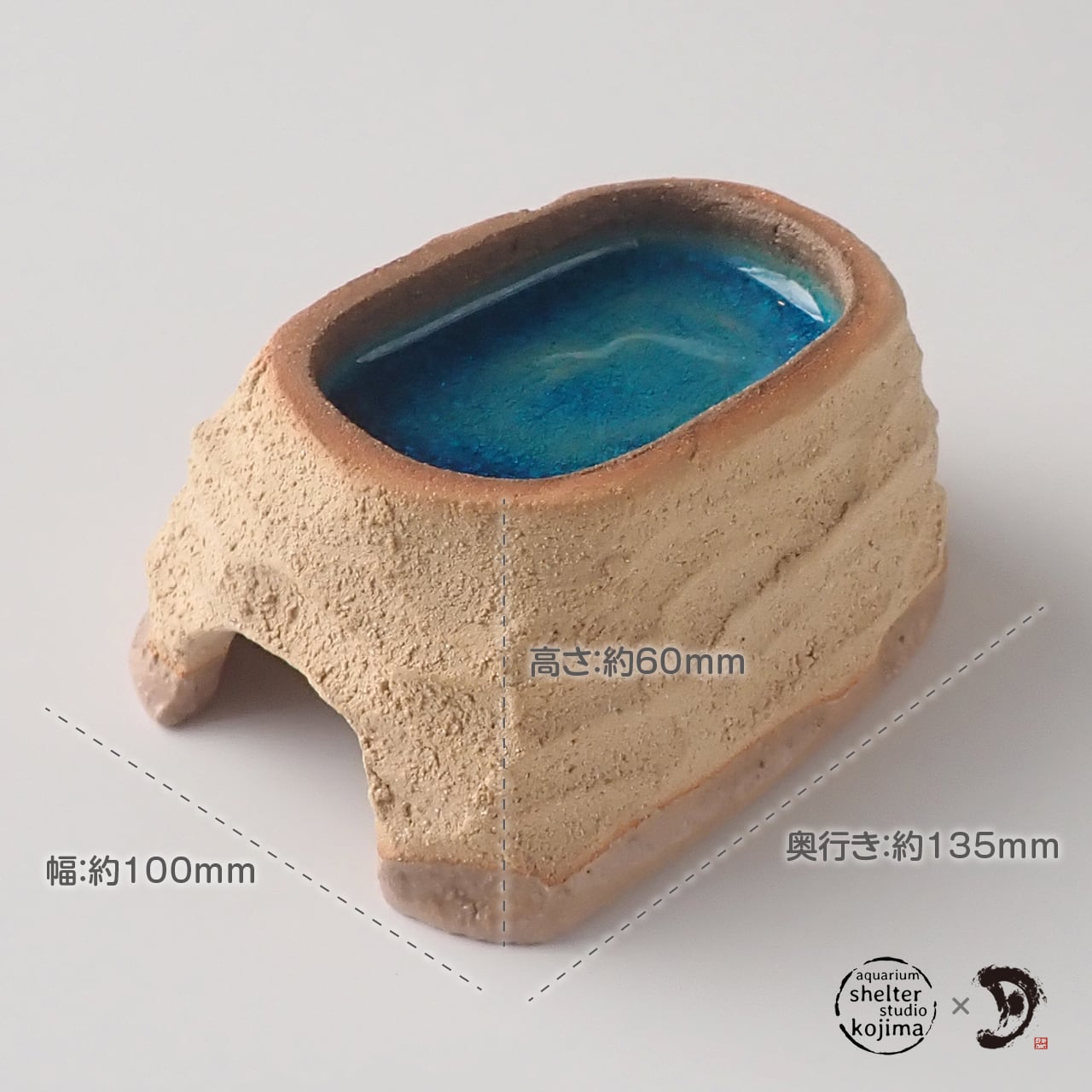 クセあり品「別誂え ウェットシェルター 素焼×ペルシャブルー」|レプタイルボックスに入るサイズ|爬虫類 レオパ ウエットシェルター|月光堂 ×アクアリウムシェルタースタジオコジマ