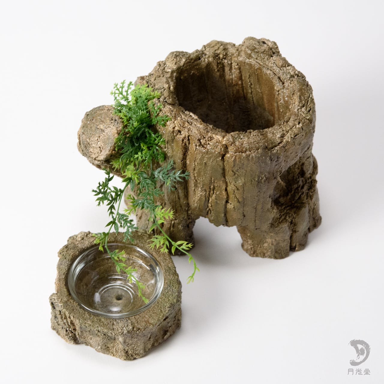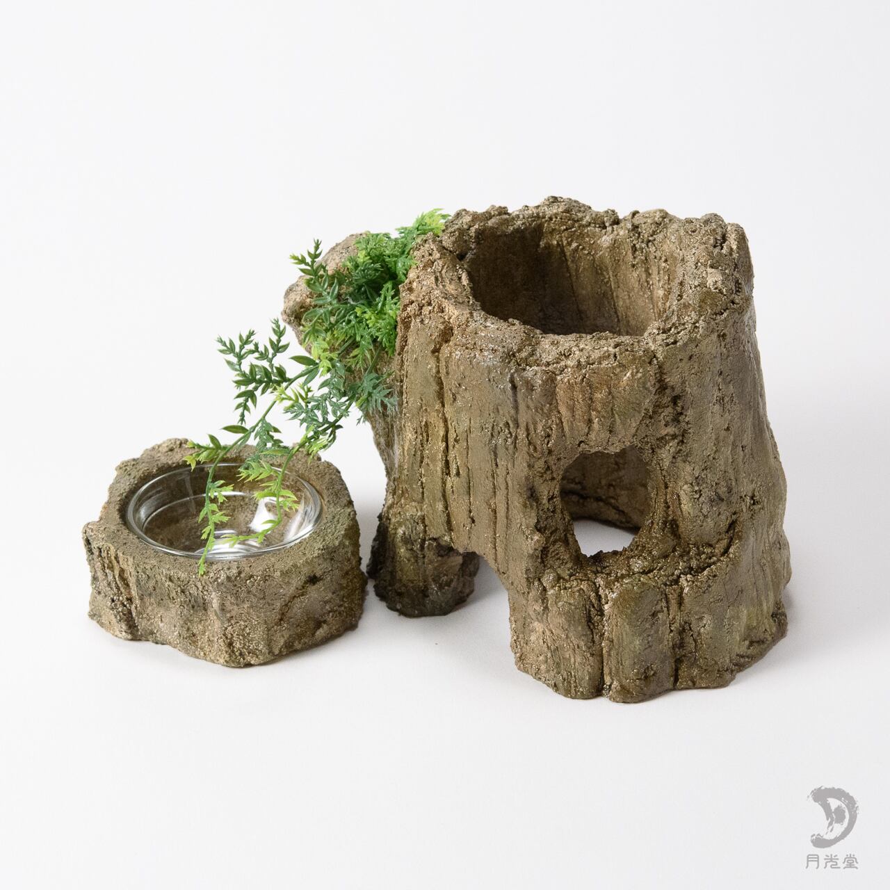 月光堂 「レイアウトシェルター 朽木 水入れセット」|レプタイルボックスに収まるサイズ| 2603-wom1