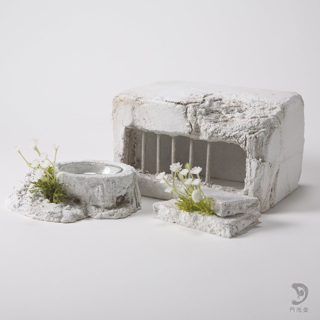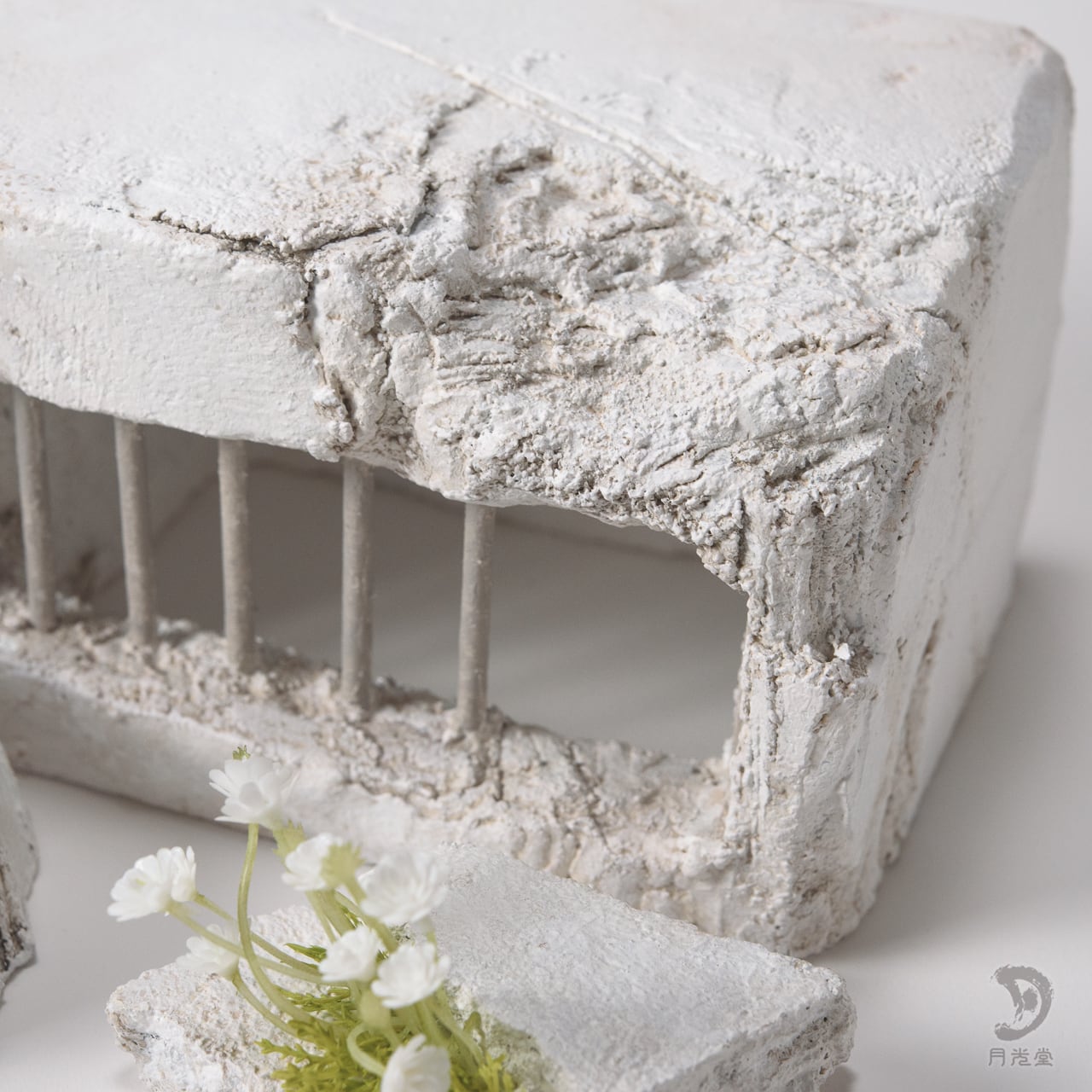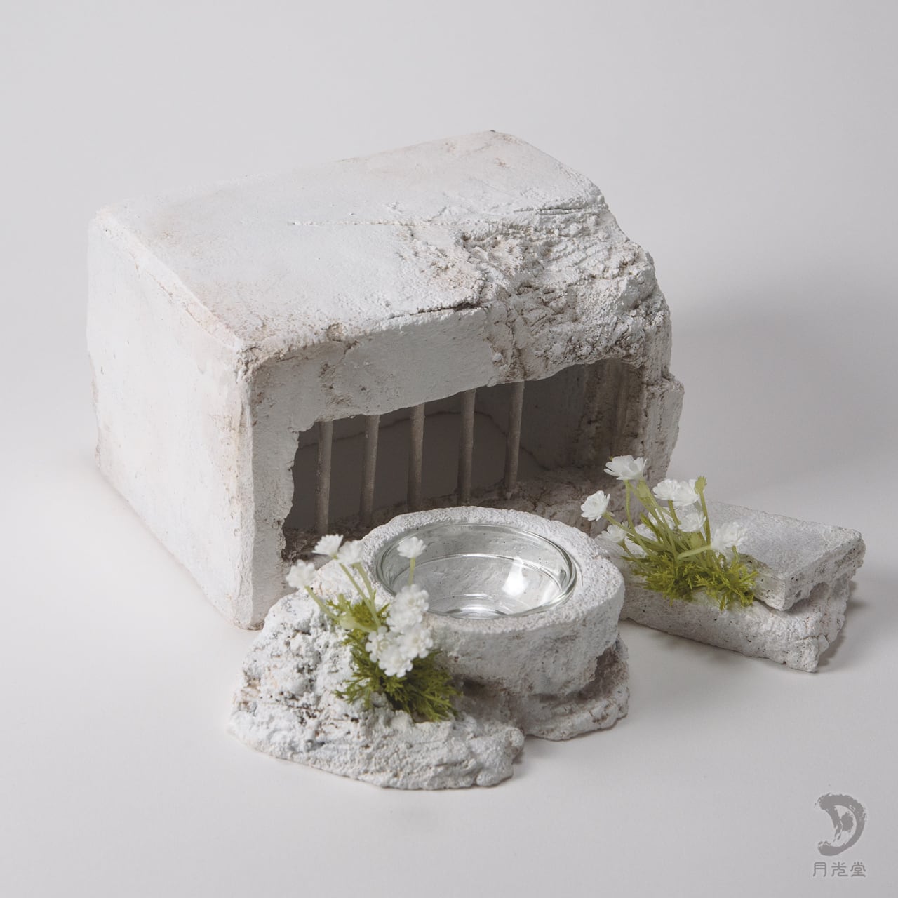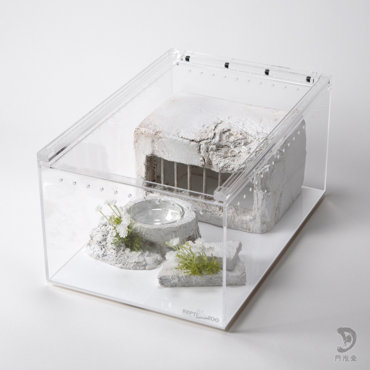 「監獄シェルター ガレキ + 水入れセット 脱獄可 特色白」|レプタイルボックスに収まるボリューム| 2603-k
