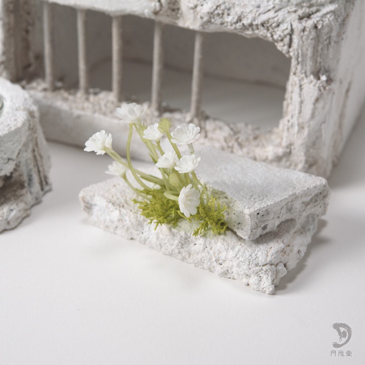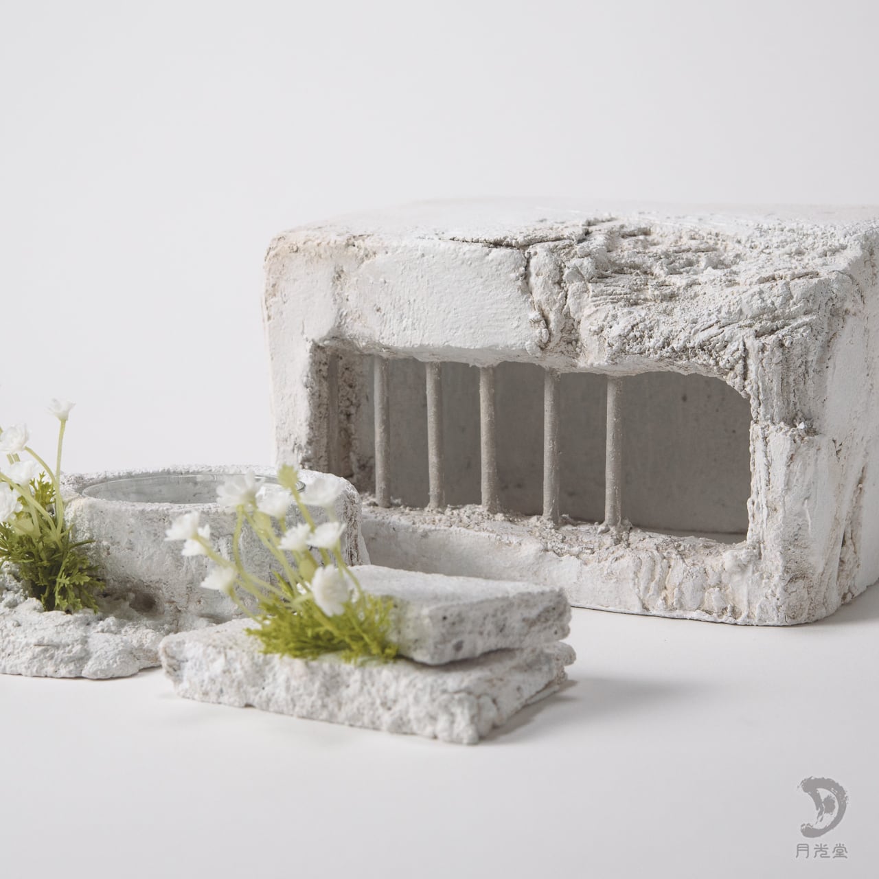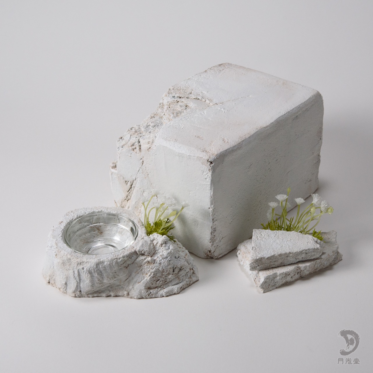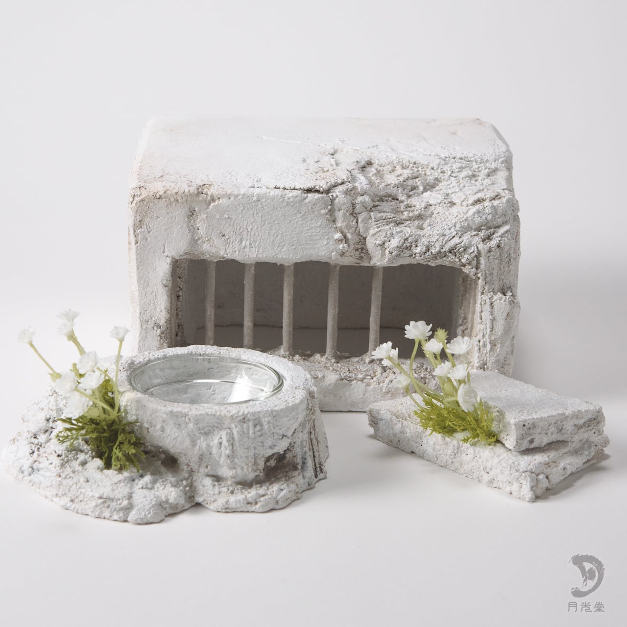 「監獄シェルター ガレキ + 水入れセット 脱獄可 特色白」|レプタイルボックスに収まるボリューム| 2603-k