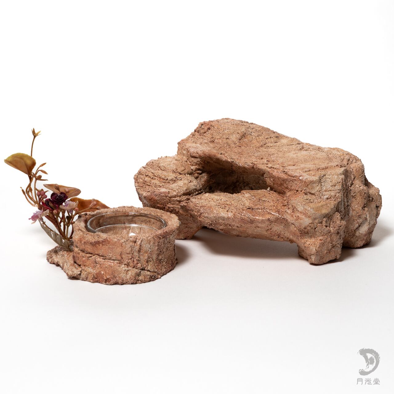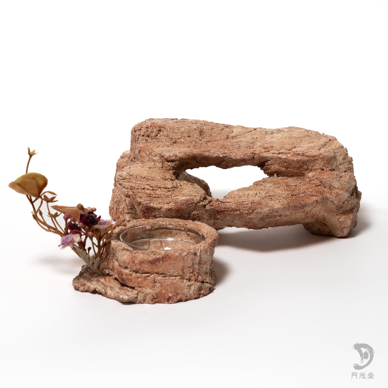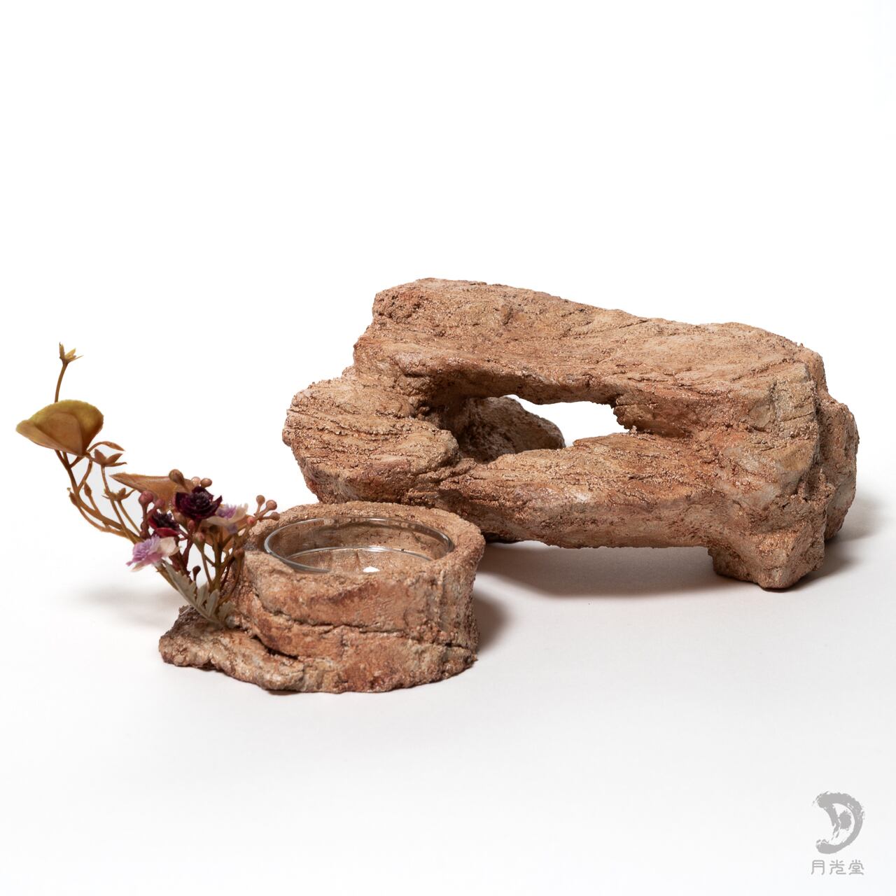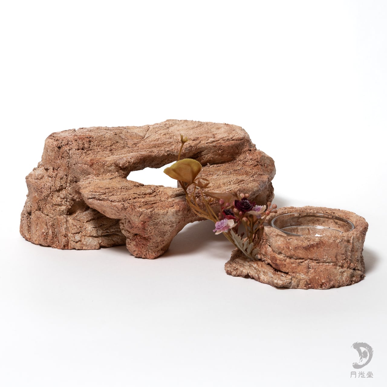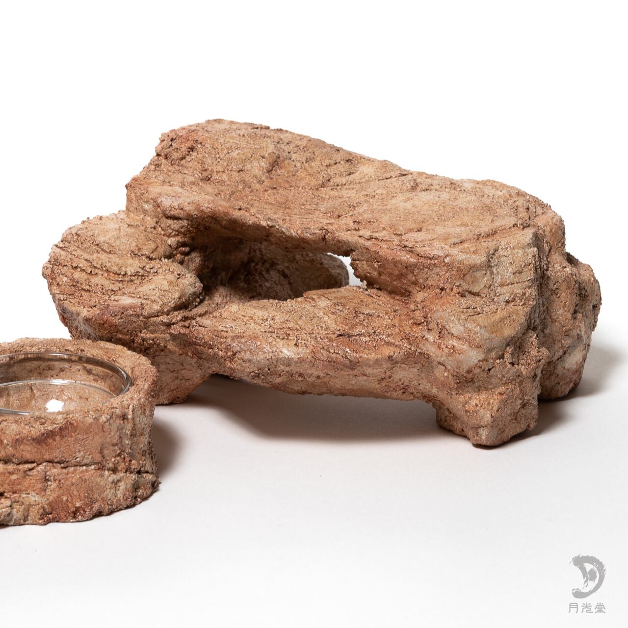 爬虫類シェルター|テーブルロックシェルター + 水入れ セット」|レプタイルボックスに収まるボリューム|月光堂 2604-tls1