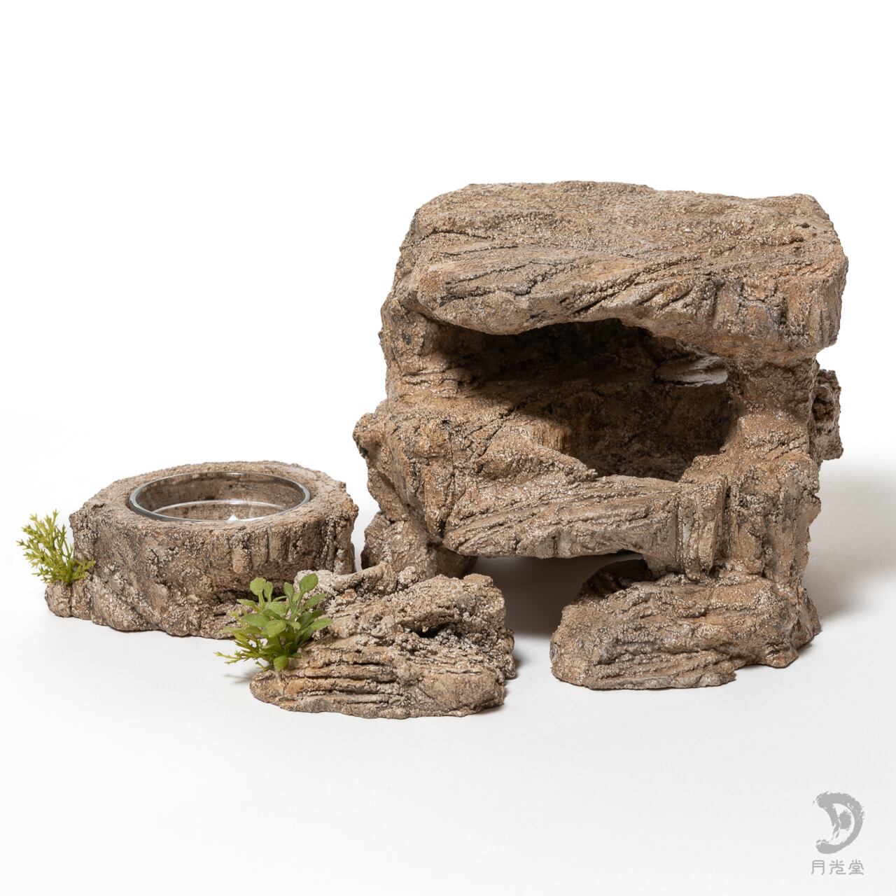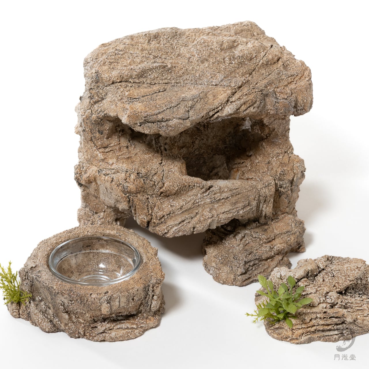 爬虫類シェルター|テーブルロックシェルター二階建て + レイアウトロック+ 水入れ セット|レプタイルボックスに収まるサイズ|月光堂 2604-tls3