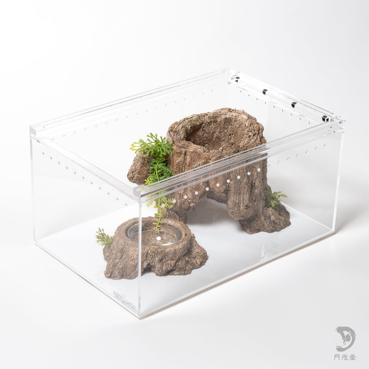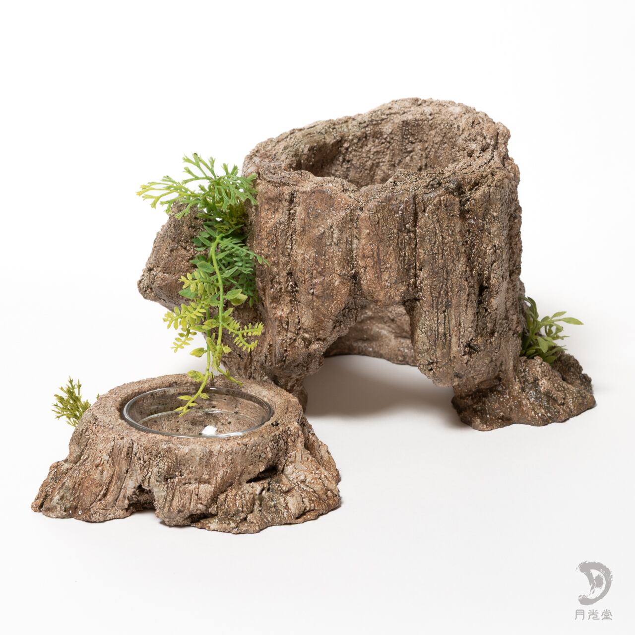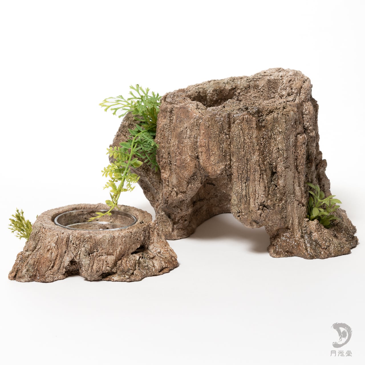 爬虫類シェルター|レイアウトシェルター 朽木 水入れセット|レプタイルボックスに収まるサイズ|月光堂 2604-wom1
