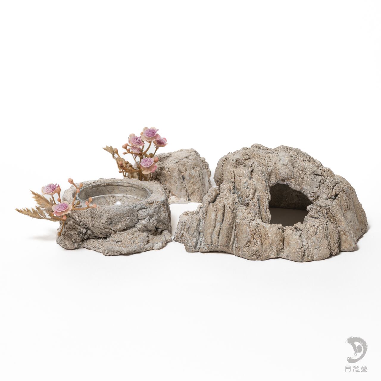 爬虫類シェルター|ドームシェルター + 水入れ + レイアウトロック セット 」|レプタイルボックスに収まるボリューム| 月光堂 2604d1