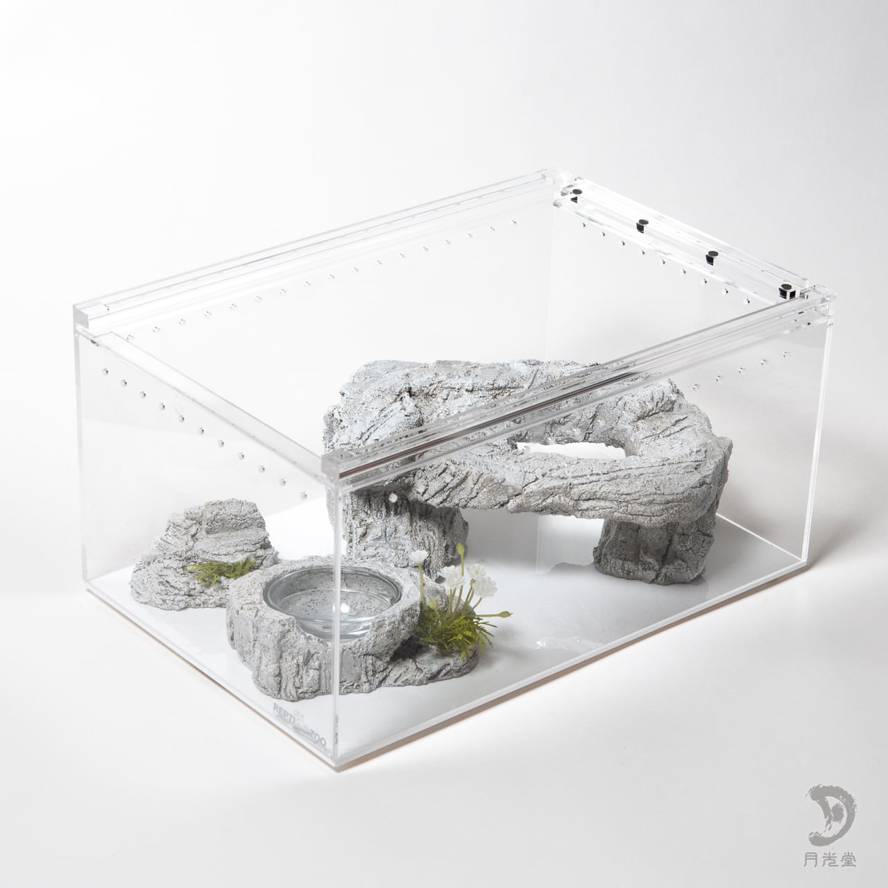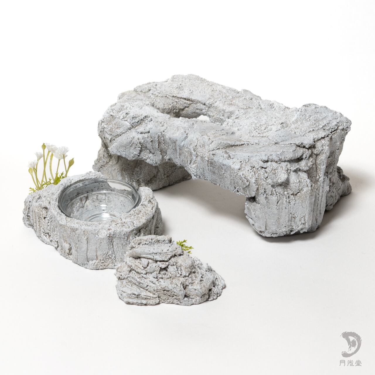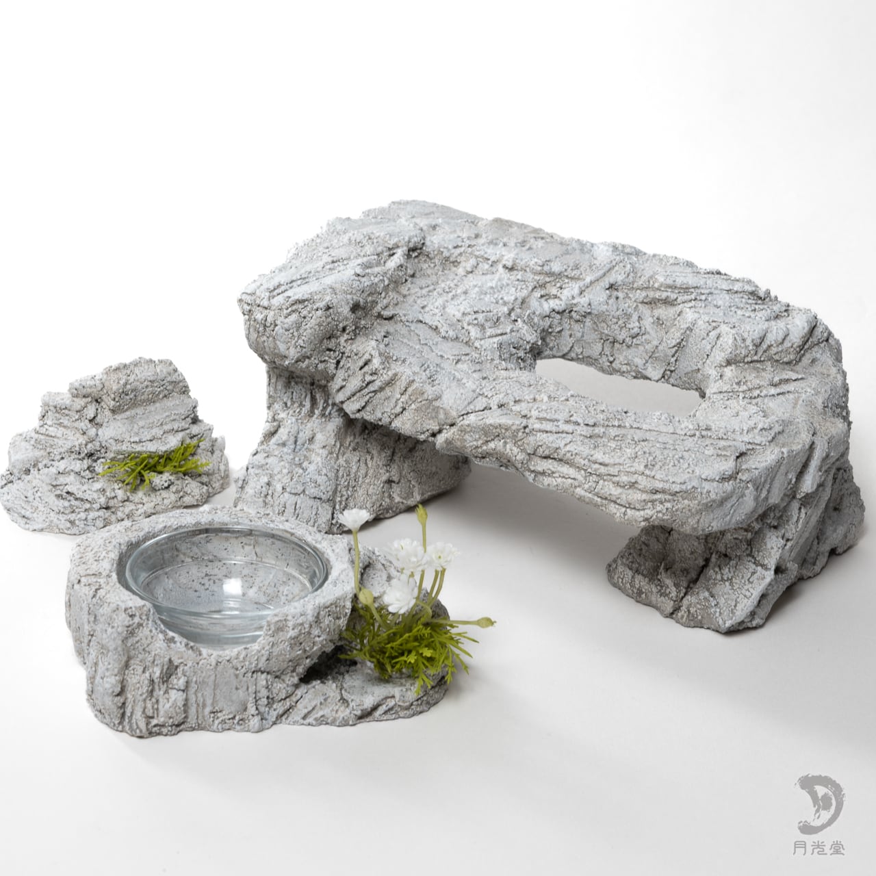 爬虫類シェルター|テーブルロックシェルター + レイアウトロック + 水入れ セット|レプタイルボックスに収まるボリューム| 258-tlss01