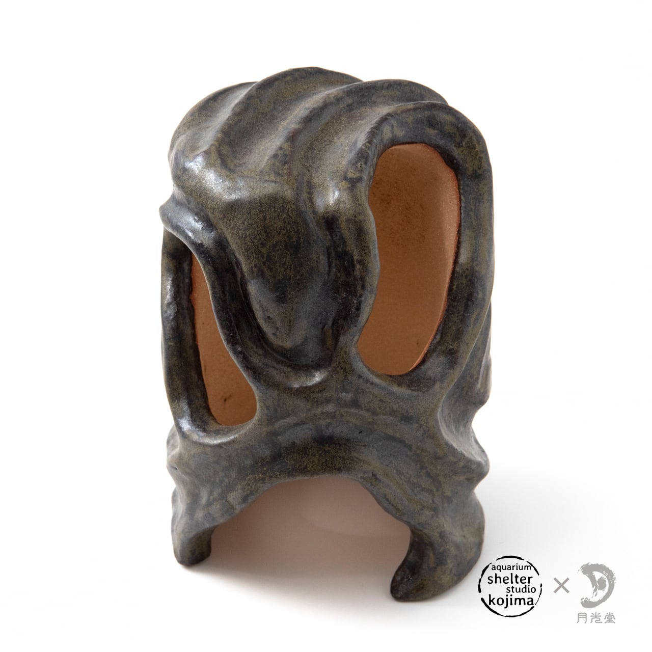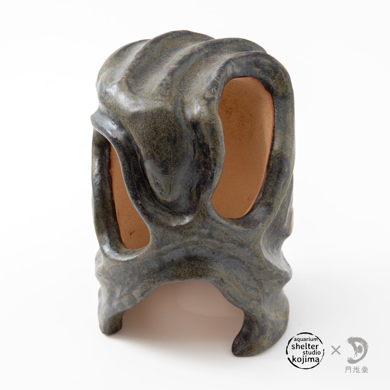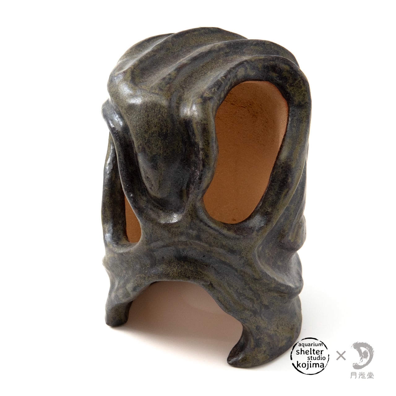 「別誂え タワーシェルター 素焼×アボカド釉薬」|月光堂 ×アクアリウムシェルタースタジオコジマ|爬虫類 クレス ウエットシェルター