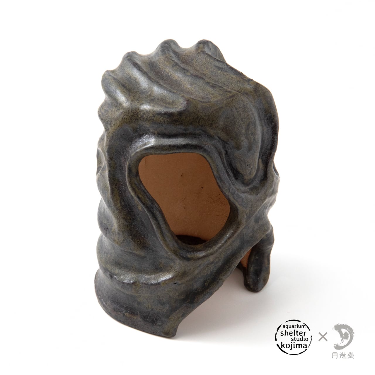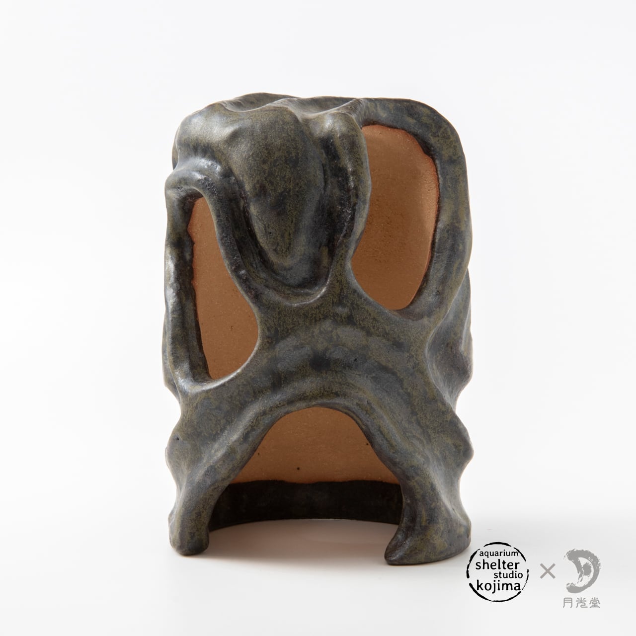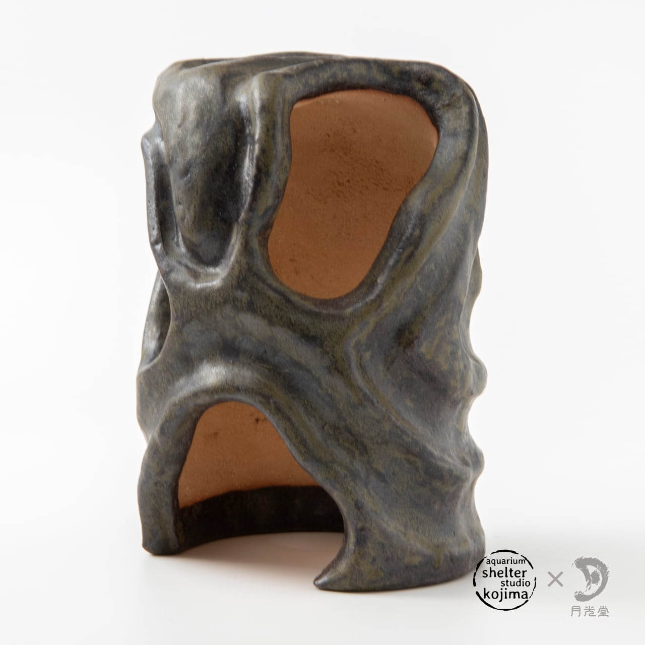 「別誂え タワーシェルター 素焼×アボカド釉薬」|月光堂 ×アクアリウムシェルタースタジオコジマ|爬虫類 クレス ウエットシェルター